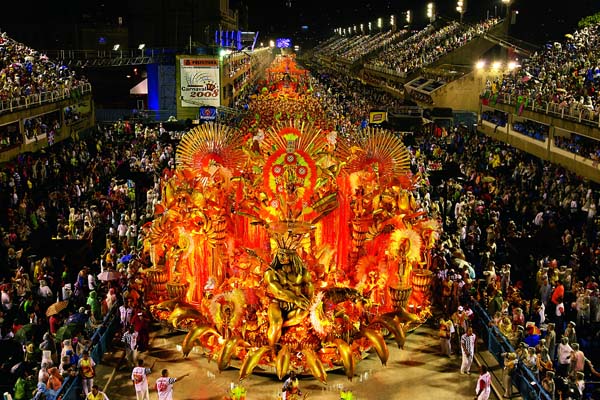 2008年2月4日,里約熱內盧狂歡節上色彩斑瀾的花車游行隊伍。(作者:張傳奇)