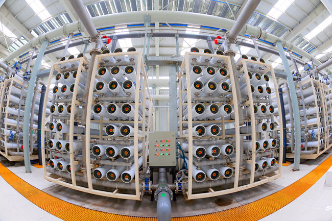 近年來,太鋼高度重視水資源的綜合利用,實施了焦化廢水、軋鋼乳化液含油廢水的源頭治理,集成運用高密度沉淀+V型濾池工業廢水處理,創新研發鋼鐵廢水雙膜法技術,形成了“工業廢水+城市生活污水”的廢水綜合利用模式,全面實現廢水資源化,水效成績顯著。近3年,太鋼平均噸鋼新水消耗量2.15噸,工業水重復利用率達到98.5%以上,在全國冶金行業名列前茅。圖為太鋼先進的工業污水膜法水處理工藝一景。 (特約通訊員 王旭宏 攝)