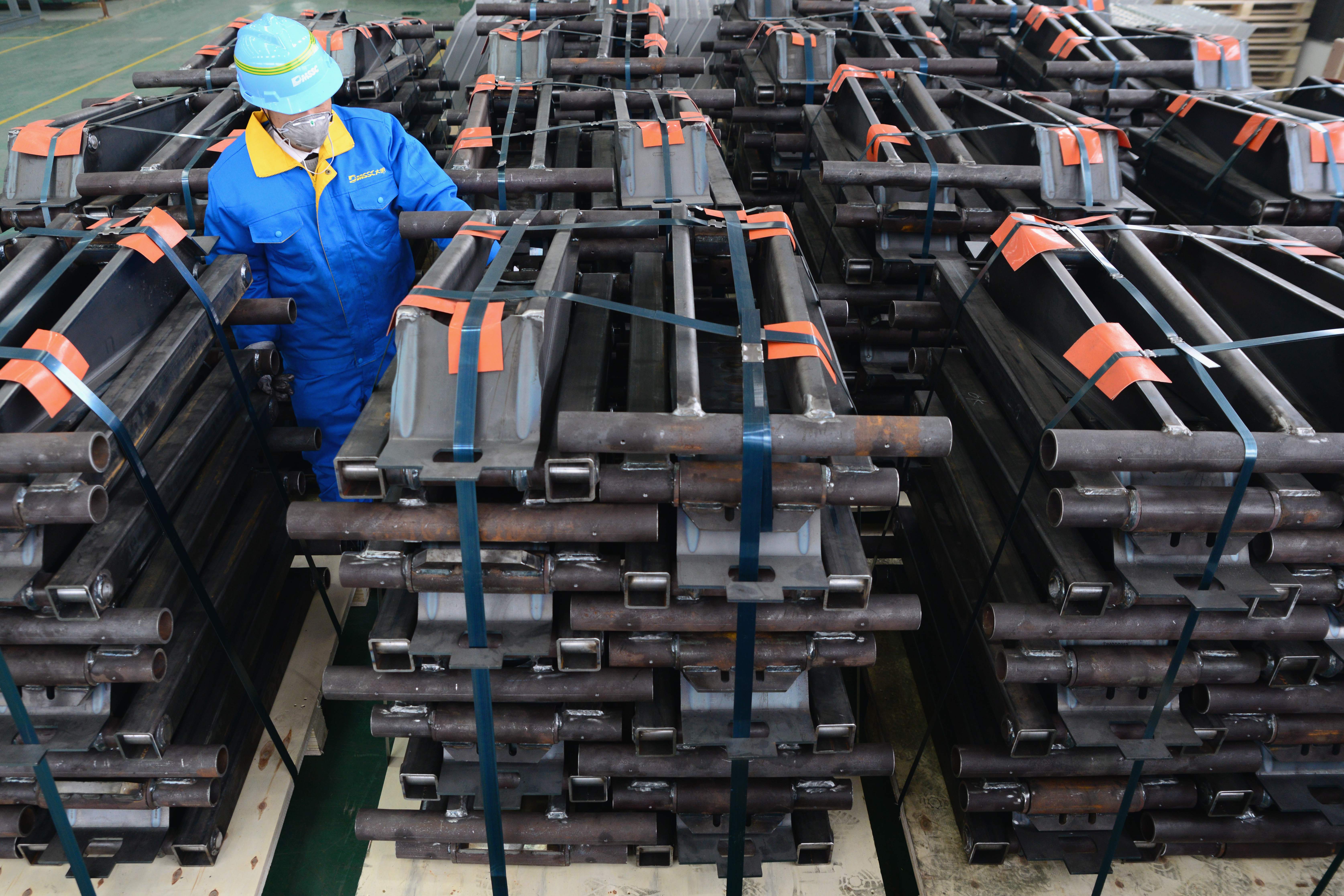 一位工人正在檢查即將發(fā)往美國的拖車部件。