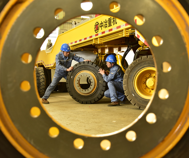 日前,中冶寶鋼重型機(jī)械分公司榮獲2018年度上海市“五一勞動(dòng)獎(jiǎng)狀”。近年以來(lái),該公司搭乘政策之舟,揚(yáng)帆“一帶一路”,核心產(chǎn)品抱罐車(chē)、鐵水車(chē)以及焊接渣罐遠(yuǎn)銷(xiāo)印度、菲律賓、馬來(lái)西亞,以及剛果(金)等國(guó)家,2018年海外簽約同比增長(zhǎng)32%;2019年4月抱罐車(chē)成功占領(lǐng)韓國(guó)市場(chǎng)。圖為該公司員工在a安裝印度尼西亞冶金專(zhuān)用車(chē)輪胎。(姜為強(qiáng) 方剛 攝)