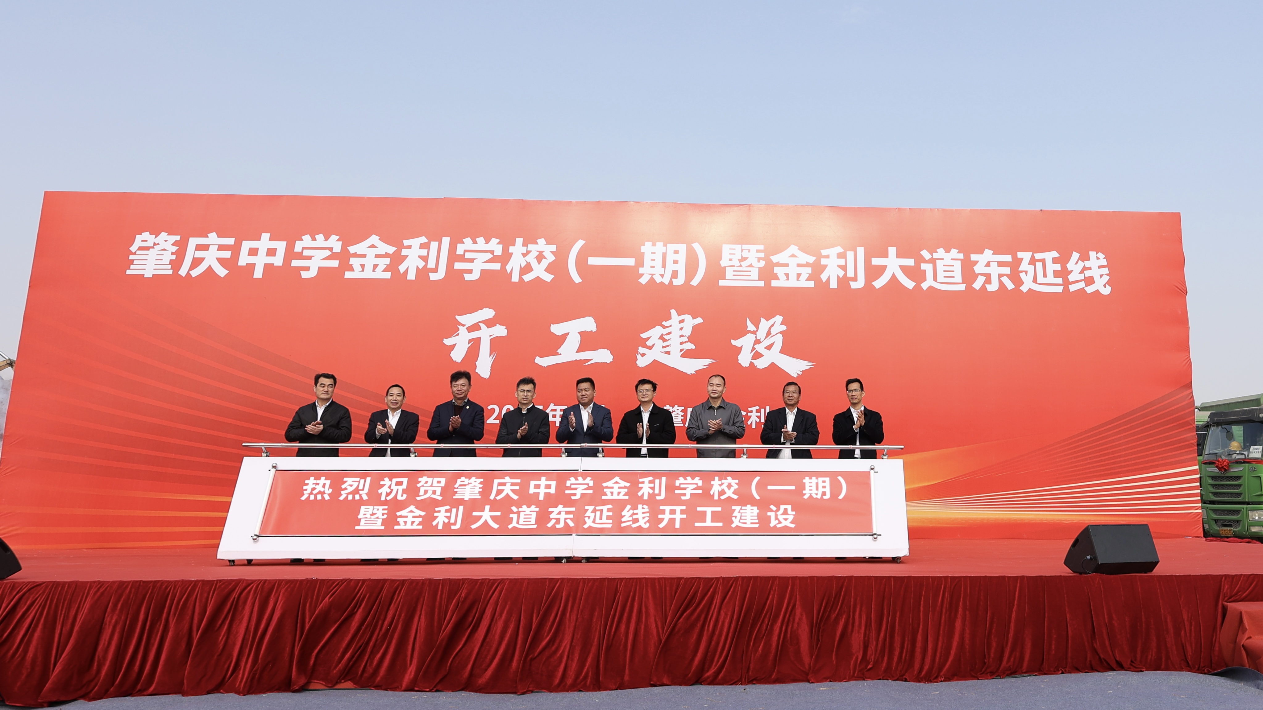 活動(dòng)最后,各方代表共同推動(dòng)動(dòng)工啟動(dòng)桿,宣告肇慶中學(xué)金利學(xué)校一期暨金利大道東延線項(xiàng)目正式動(dòng)工。