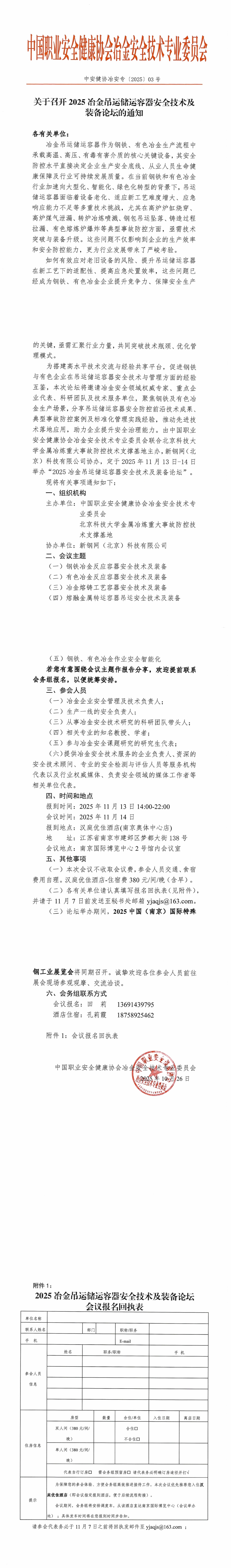 關(guān)于召開(kāi)2025冶金吊運(yùn)儲(chǔ)運(yùn)容器安全技術(shù)及裝備論壇的通知