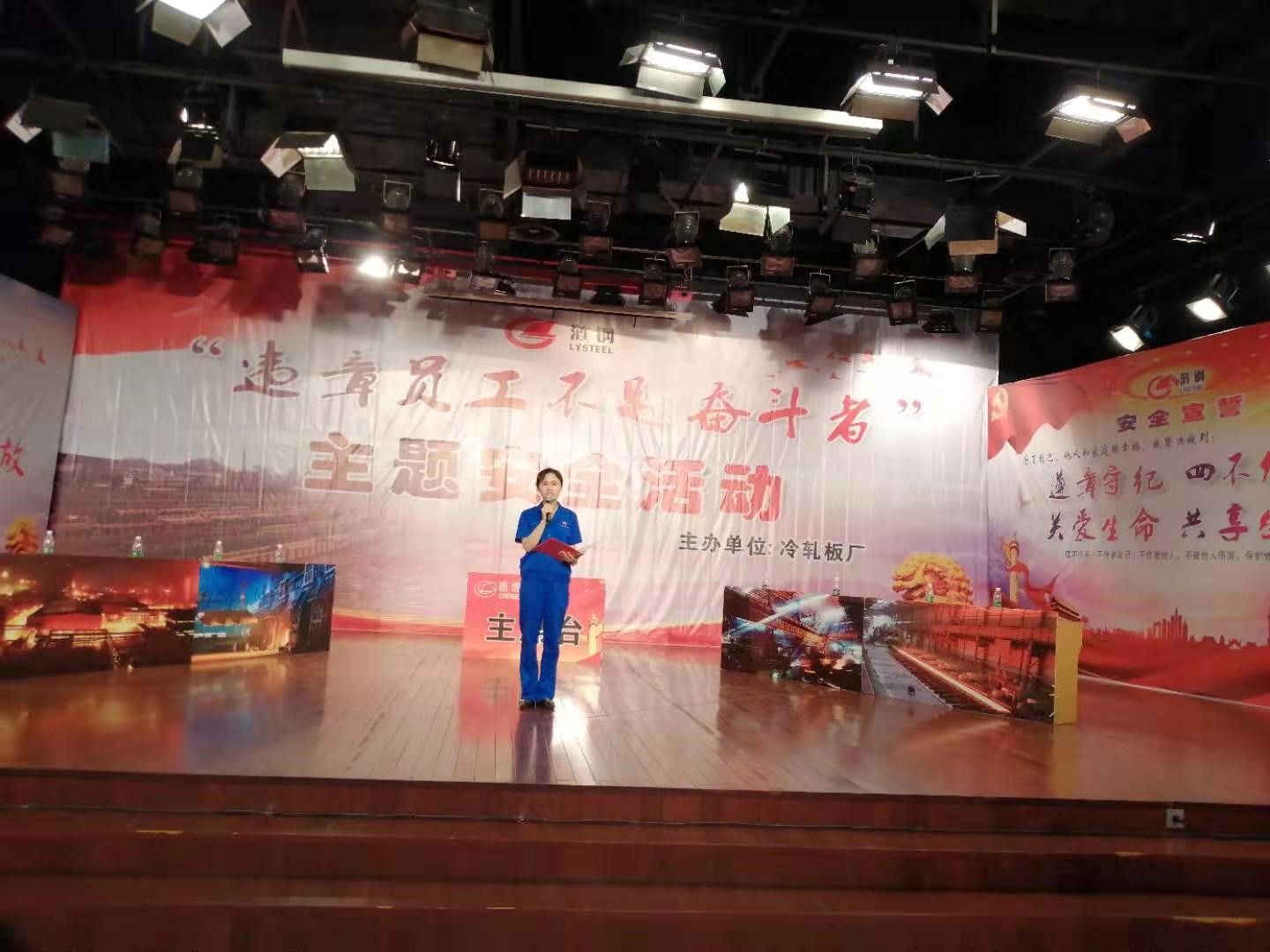這是為了深入宣傳貫徹黨的十九大精神、習(xí)近平總書記關(guān)于安全生產(chǎn)工作的重要思想,努力建設(shè)平安鋼城,和諧環(huán)境,激勵(lì)引導(dǎo)青年職工不斷增強(qiáng)安全意識(shí),提高安全生產(chǎn)技能,參與安全生產(chǎn)管理,促進(jìn)單位的安全生產(chǎn)工作,華菱漣鋼冷軋板廠工會(huì)、團(tuán)委、安保室聯(lián)合舉辦以“違章員工不是奮斗者”為主題的安全教育活動(dòng)前,由主持人帶領(lǐng)全體參與活動(dòng)的與會(huì)人員在進(jìn)行“安全宣誓”。