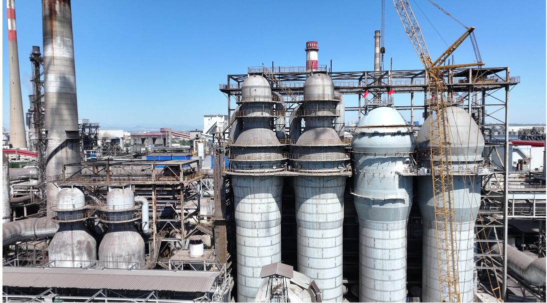 安鋼4747m3高爐配置4座引進的頂燃式熱風爐,配置2座預熱爐,設計送風壓力 0.47MPA,風溫1300度,實際使用風溫1150℃-1180℃,由于4座熱風爐燃燒室爐殼出現了頻繁開裂,對安全生產造成了嚴重威脅,因此,自 2023年9月1日停爐至今,開始切割爐殼實施懸鏈線頂燃式熱風爐改造。目前1、2號熱風爐技術改造已經完成投入使用。