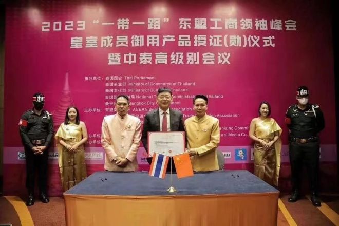 6月27日,2023一帶一路東盟工商領袖峰會暨皇室成員御用產品授證(勛)儀式暨中泰高級別會議在泰國曼谷拉差達瑞士酒店舉行。