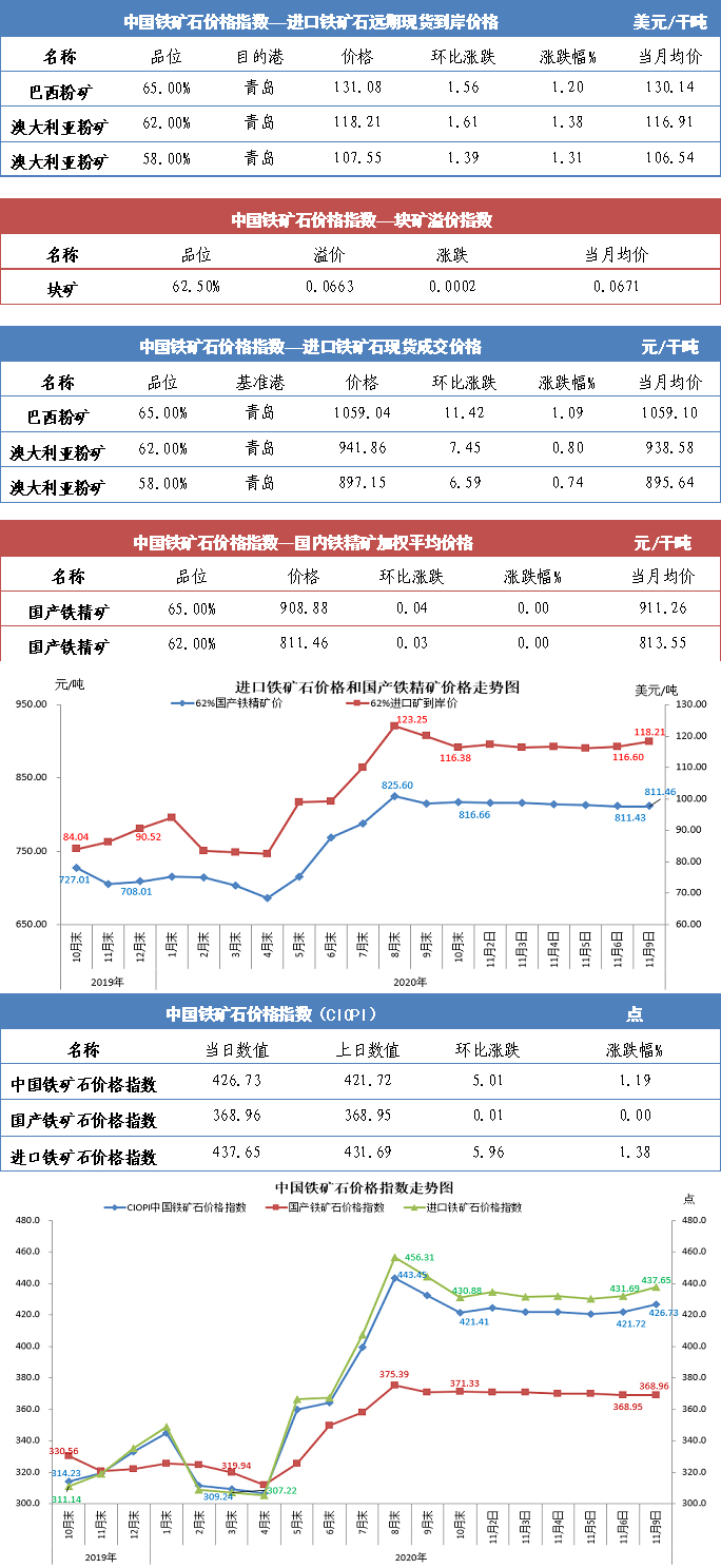 【行業(yè)指數(shù)】11月9日中國鐵礦石價格指數(shù)