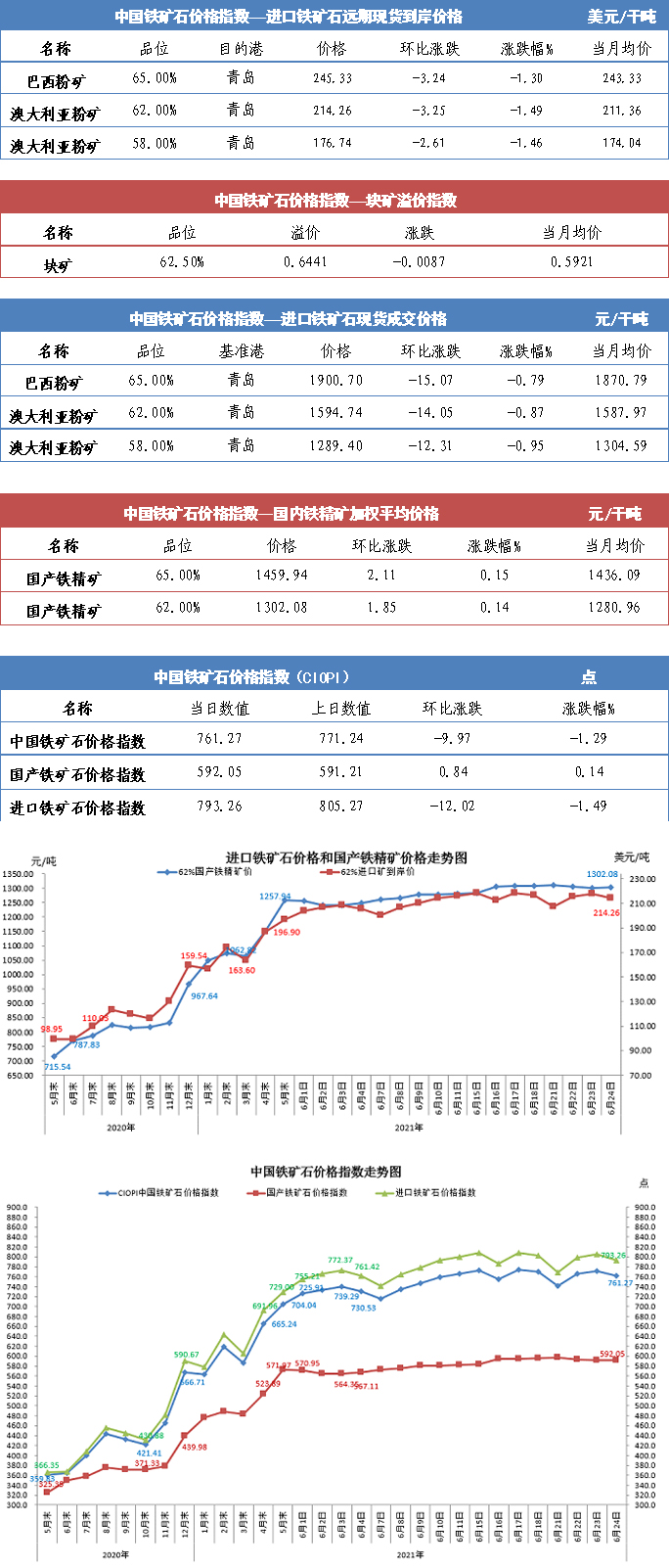 【行業(yè)指數(shù)】6月24日中國鐵礦石價格指數(shù)