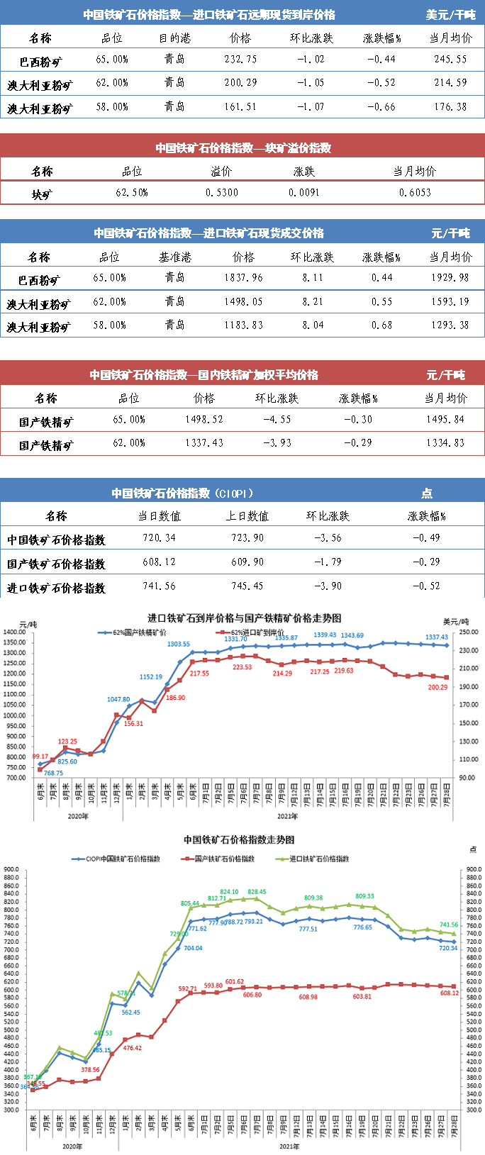【行業指數】7月28日中國鐵礦石價格指數