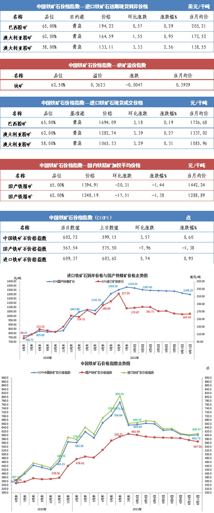 【行業指數】8月11日中國鐵礦石價格指數