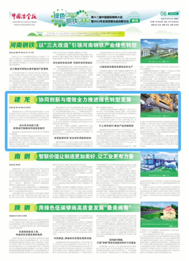 未來,建龍集團將順應國家進一步推動綠色低碳循環發展的總體部署,持續以綠色化為引領,以科技創新作為不竭的驅動力,加快富氫熔融還原賽思普(CISP)氫冶金等工藝的研發突破;同時積極促進“無廢城市”建設,實現與社會、自然和諧共處,為我國鋼鐵行業“綠色革命”貢獻建龍力量。