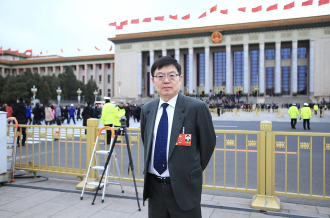 等待采訪拍攝委員的記者們一直等候在人民大會堂前