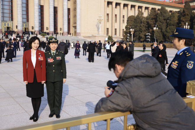 閉幕會前,各界委員們紛紛在人民大會堂前合影留念