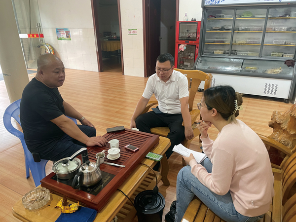 圖為《中國冶金報》記者(右)在福建省三明市三元區巖前鎮采訪當地居民。 (張倩茹 攝)