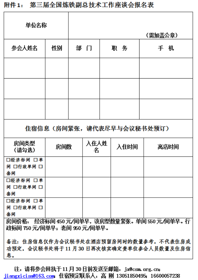 本次工作會議免收鋼鐵生產企業會務費,代表交通費用自理。參會煉鐵生產企業須提交交換材料,材料印刷截至日期為11月30日;煉鐵生產企業交換材料模版可向會議秘書處索取。參會回執、交換資料返回郵箱;jx@csm.org.cn;jiangxicisa@163.com 截至日期為11月30日。